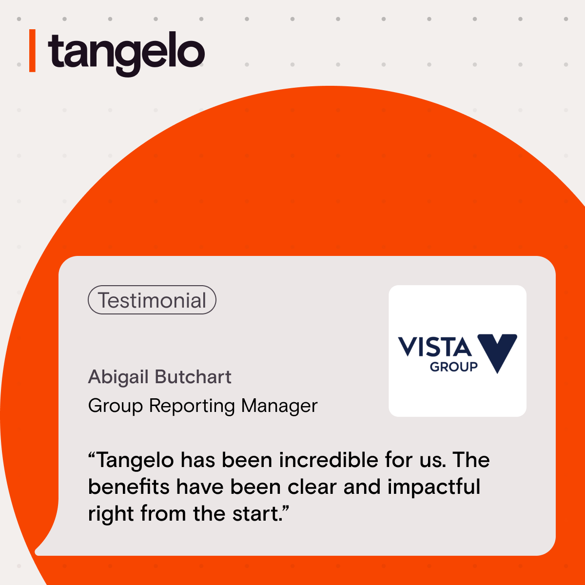 After implementing Tangelo, Vista achieved a record-breaking turnaround on its interim report, delivered two weeks earlier than ever before, with far less effort and stress across both finance and marketing teams.