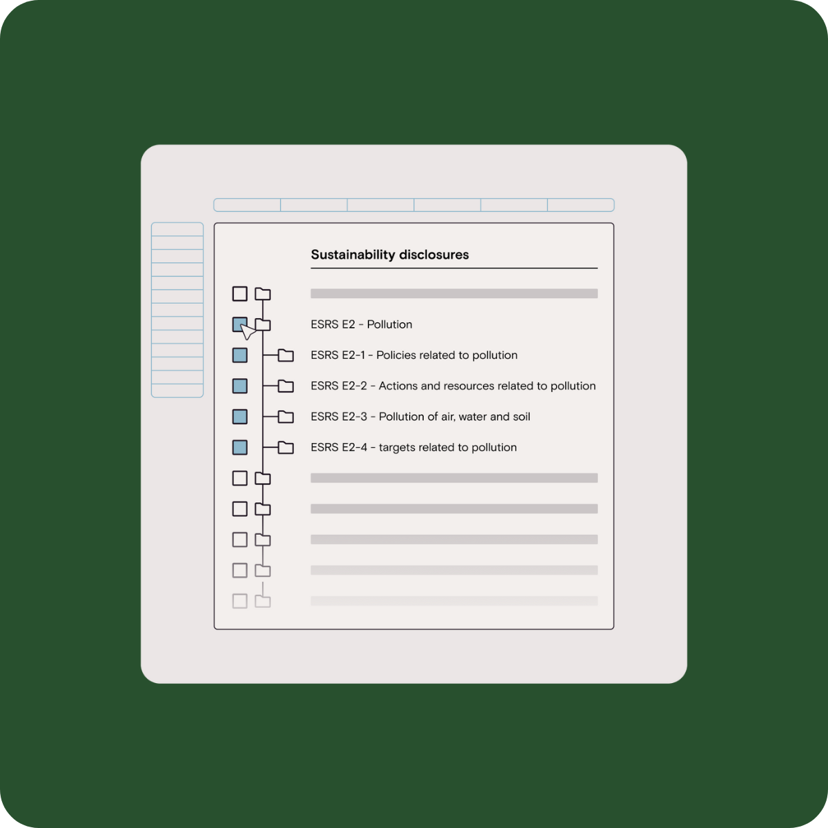 Record materiality decisions - capture the outcome of your (double) materiality analysis to define what’s in scope.