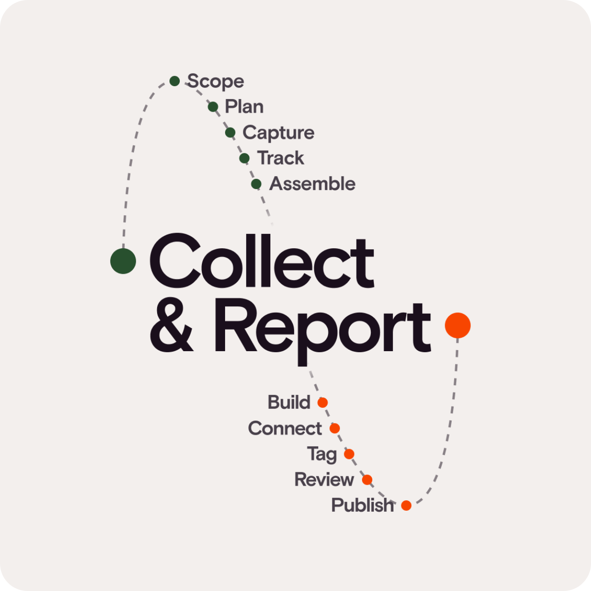 Tangelo ESG Collect follows five core steps that turn ESG data collection into a structured, auditable, and scalable process — from scoping what’s in, to planning, capturing, tracking, and assembling disclosure data ready for reporting.