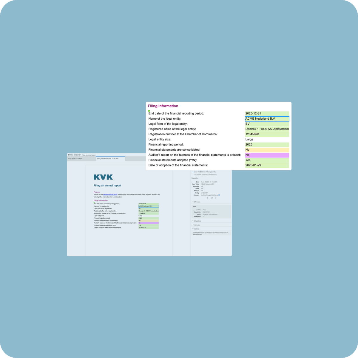 In Tangelo, tagging is built right into the reporting process itself. There’s no need to juggle separate Excel files or external tagging tools. Everything happens within one platform, from content creation through to producing the final iXBRL output for the KvK. Inline XBRL is generated directly from your report content, so there are no conversions or version mismatches. When updates are required, your team can make them quickly and confidently, without waiting on others.
