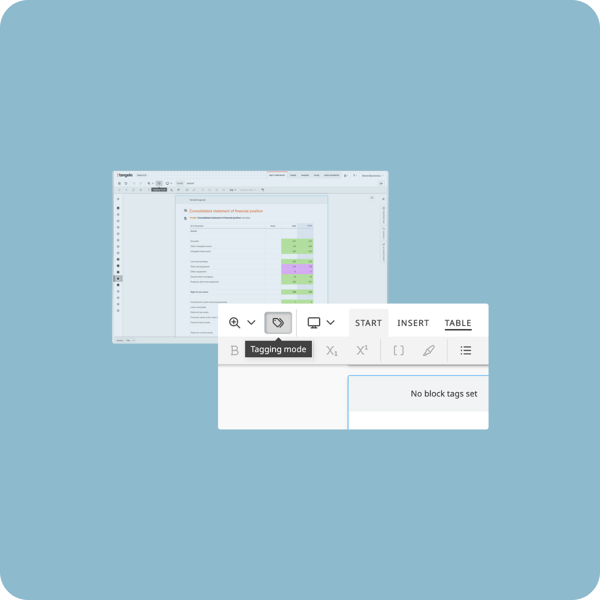 Tag financial and sustainability disclosures directly in your report. Keep compliance seamless without bolted-on solutions or third-party dependencies.